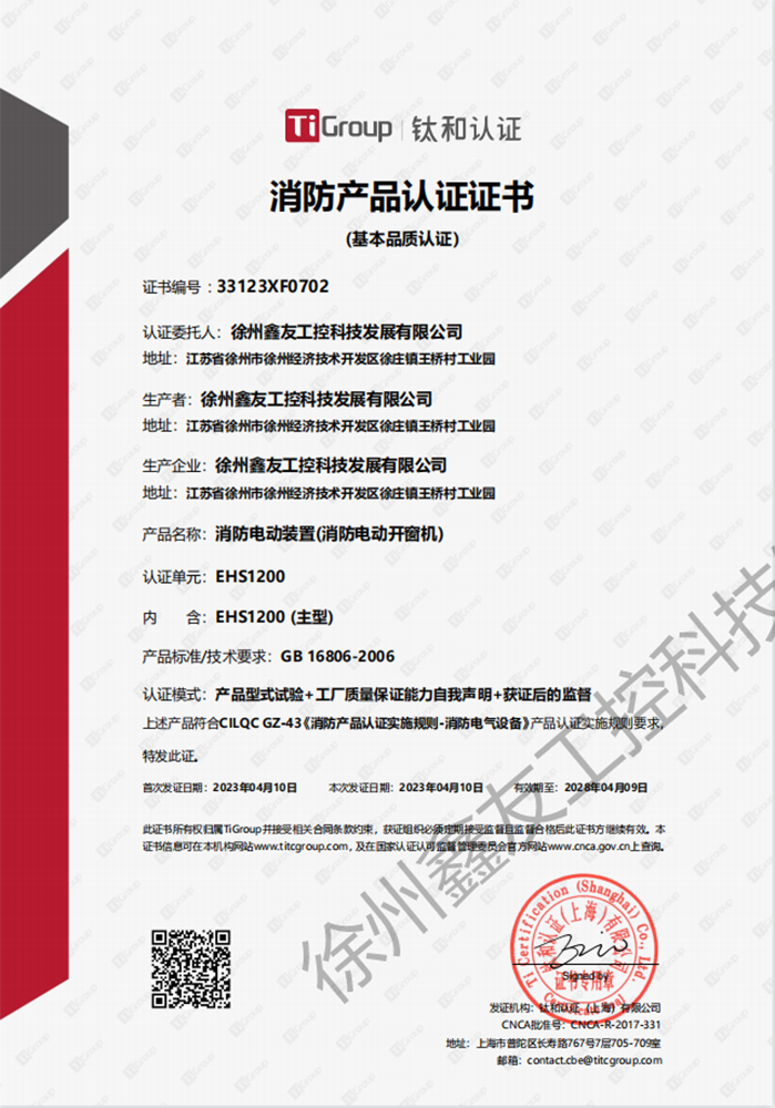 徐州鑫友工控科技發展有限公司成立于2008年,占地31600平方米,全資子公司:江蘇良紫工程科技有限公司,旗下 有“鑫友”及“MASTER.W主人窗控”兩個品牌系列,公司全面貫徹執行IS09001:2015質量管理體系標準,產品順利通過歐盟CE認證和中國***消防電子產品認證,通過可燃性粉塵環境下、爆炸性環境下防爆合格產品檢驗。排煙天窗整窗通過***消防產品質量監督檢驗中心檢測。先后獲得多項******及榮譽證書。集研發、加工、生產、制造、銷售、安裝及售后于一體,是一家高起點、研發能力強的專業智能化***技術企業。